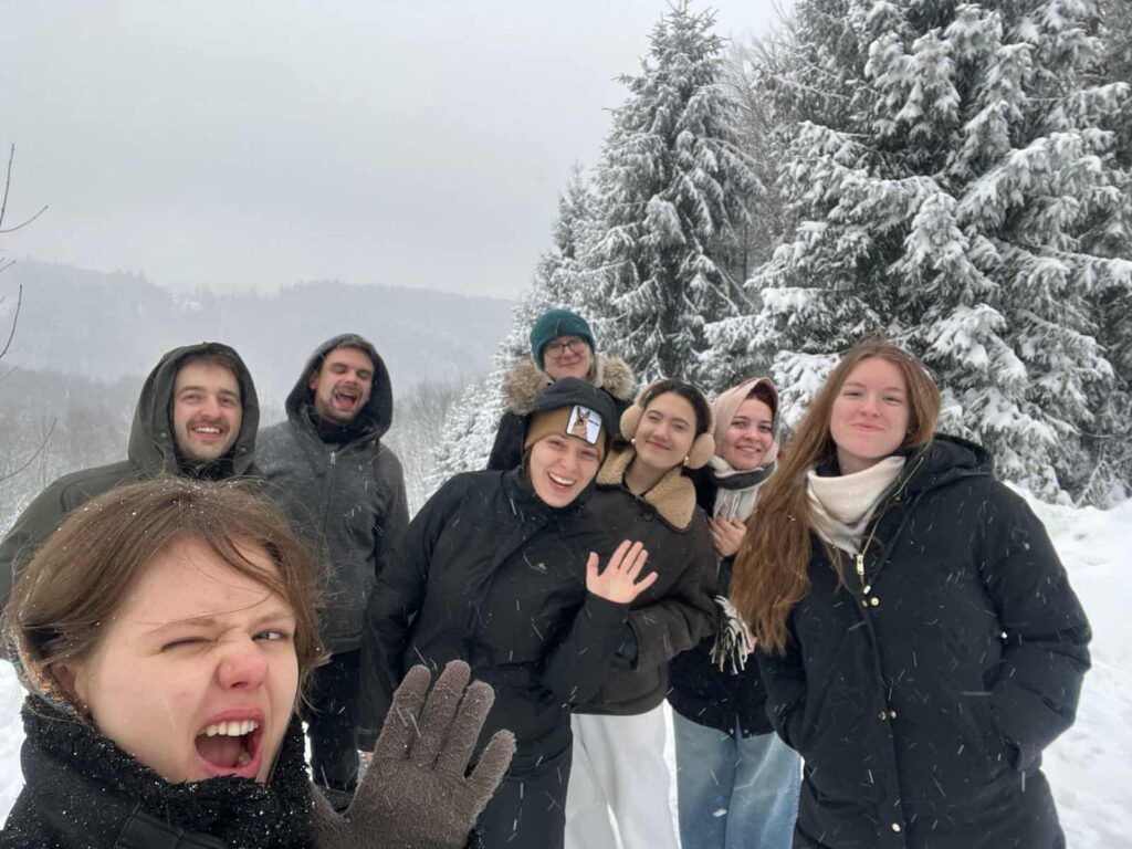 Az első napokban délelőttönként jégtörőkkel játszottunk, amelyek segítettek jobban megismerni egymást. Martin Frolík, a szervezőnk mesélt nekünk sok érdekességet magáról az Erasmus+ programról, a cseh szervezetükről, illetve mi, résztvevők is bemutattuk a szervezetet, ahonnan jöttünk és hogy mit is csinálunk ott. A délutáni elfoglaltságok előtt lehetőségünk nyílt felfedezni a környéket. Sétáltunk, túráztunk, illetve „érett felnőttek” módjára hóembereket építettünk és hócsatáztunk.