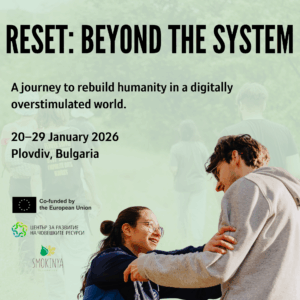 20–29 January 2026 | Plovdiv, Bulgaria Az Erasmus+ tréningre maximum 3 fő résztvevőt várunk, akiket a motivációs levelek alapján a fogadó szervezettel közösen választunk ki! A programról röviden: “RESET: Beyond the System”